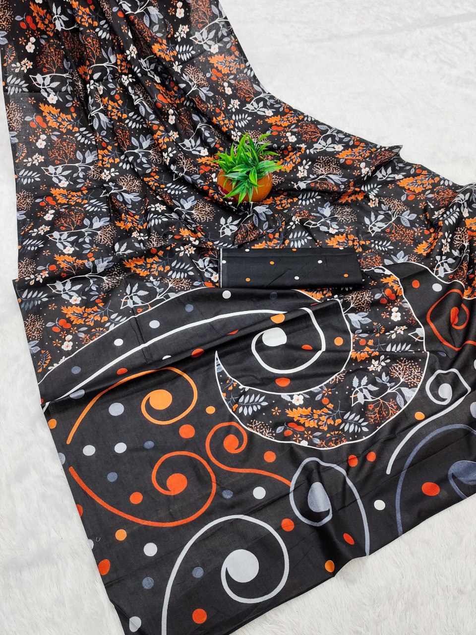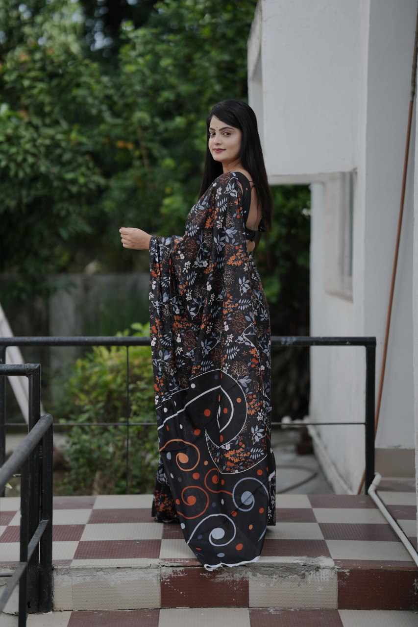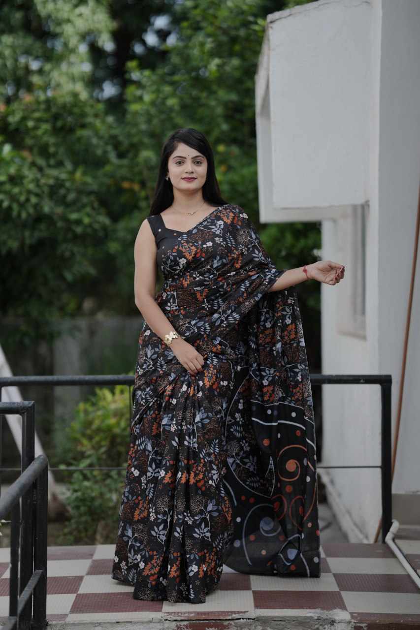 83 PADMAVATI BLACK MULMUL COTTON SAREE