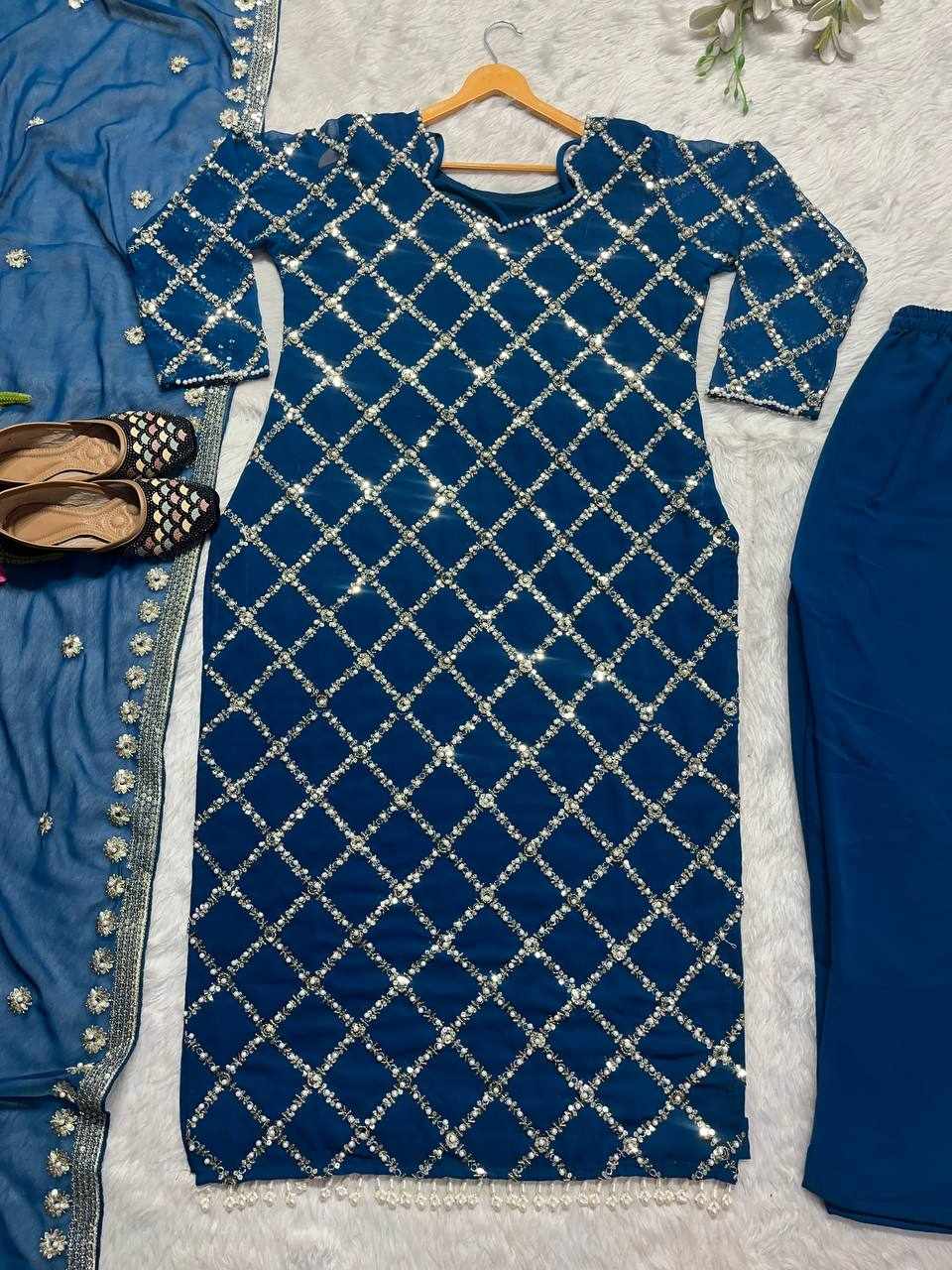 MF 409 New Fancy Embroidered Blue Dress