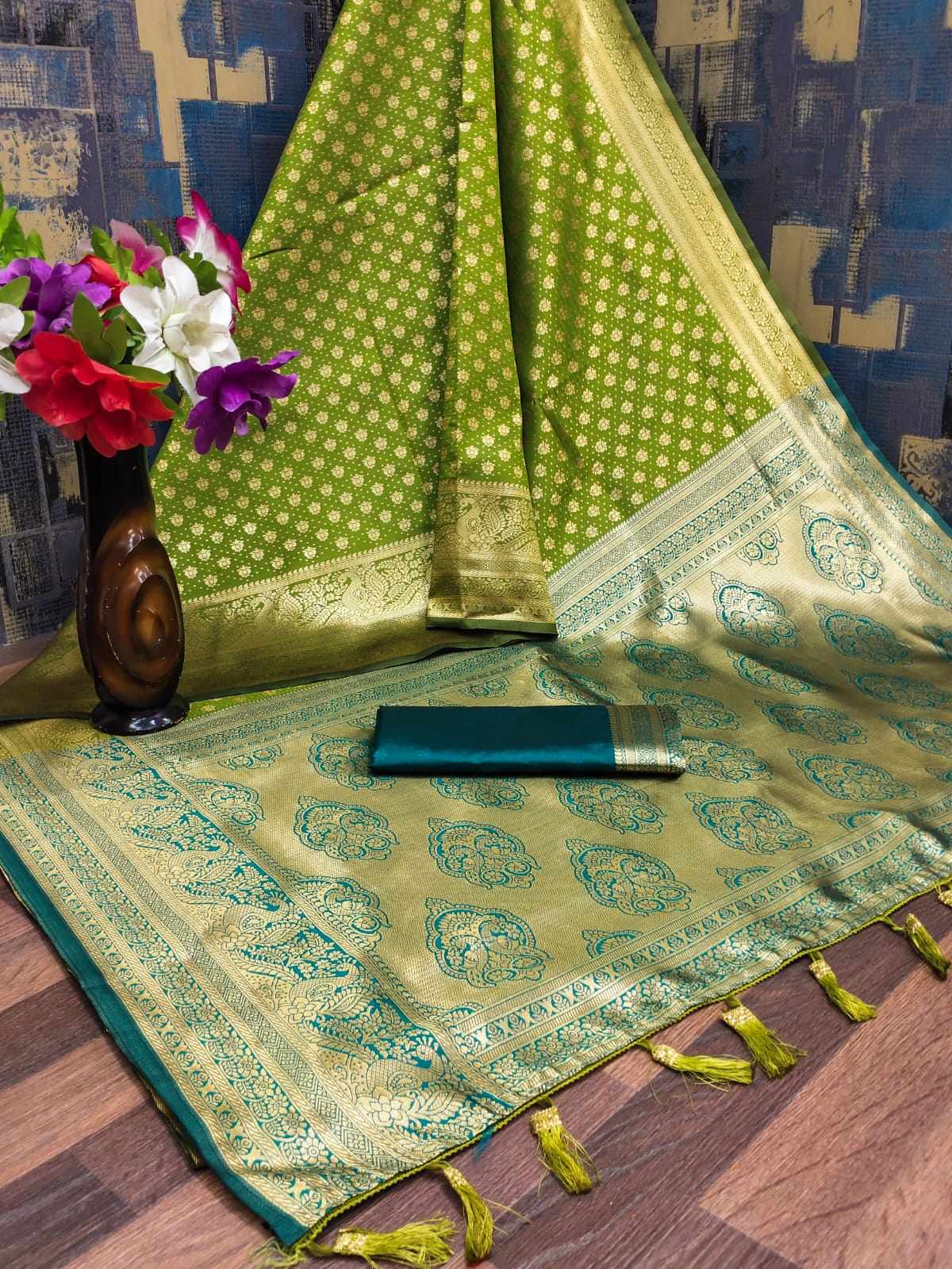 MK 123 Green Banarasi Silk Saree with Running Blouse