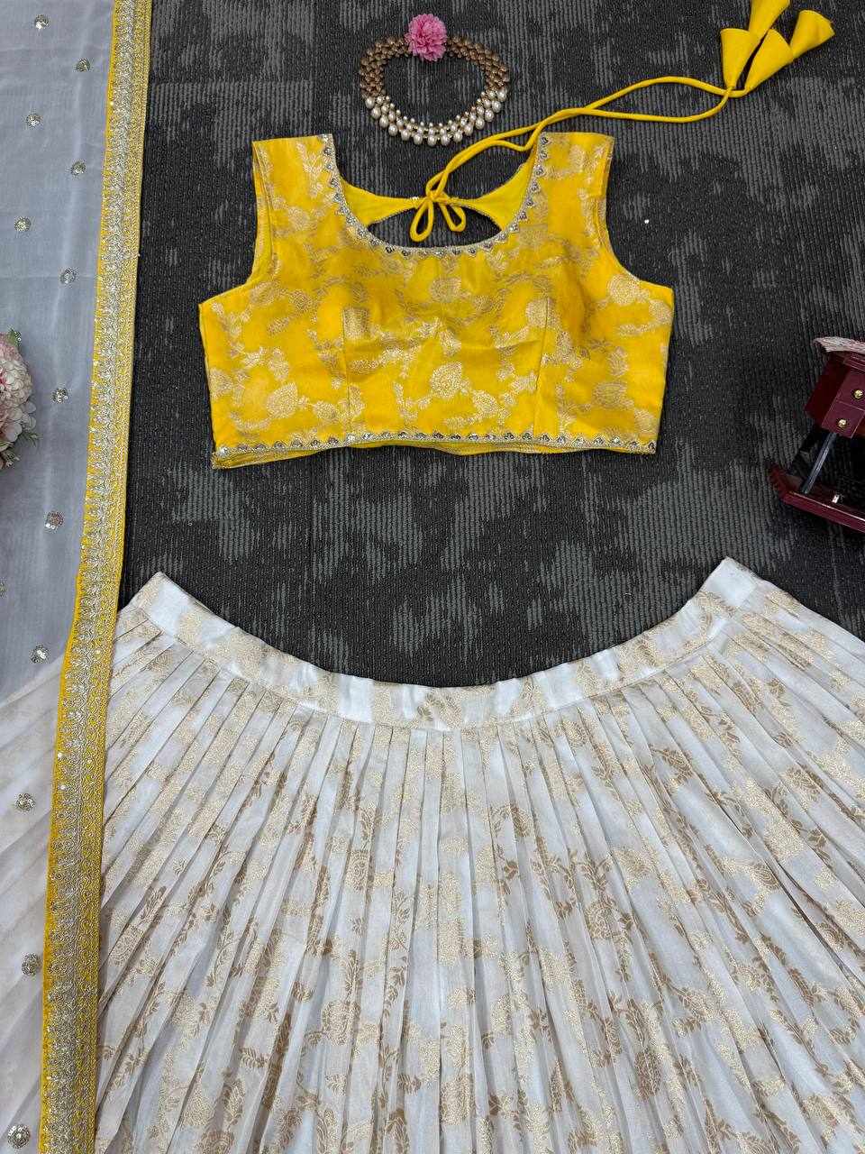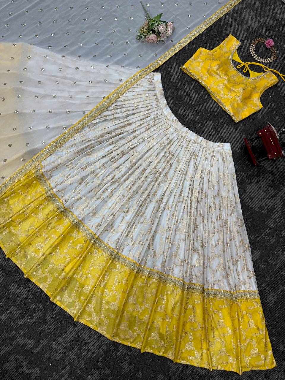 | Name : | QRC 318 Jequrd Codeing with Sequnce Semi Stitch Lehengha |