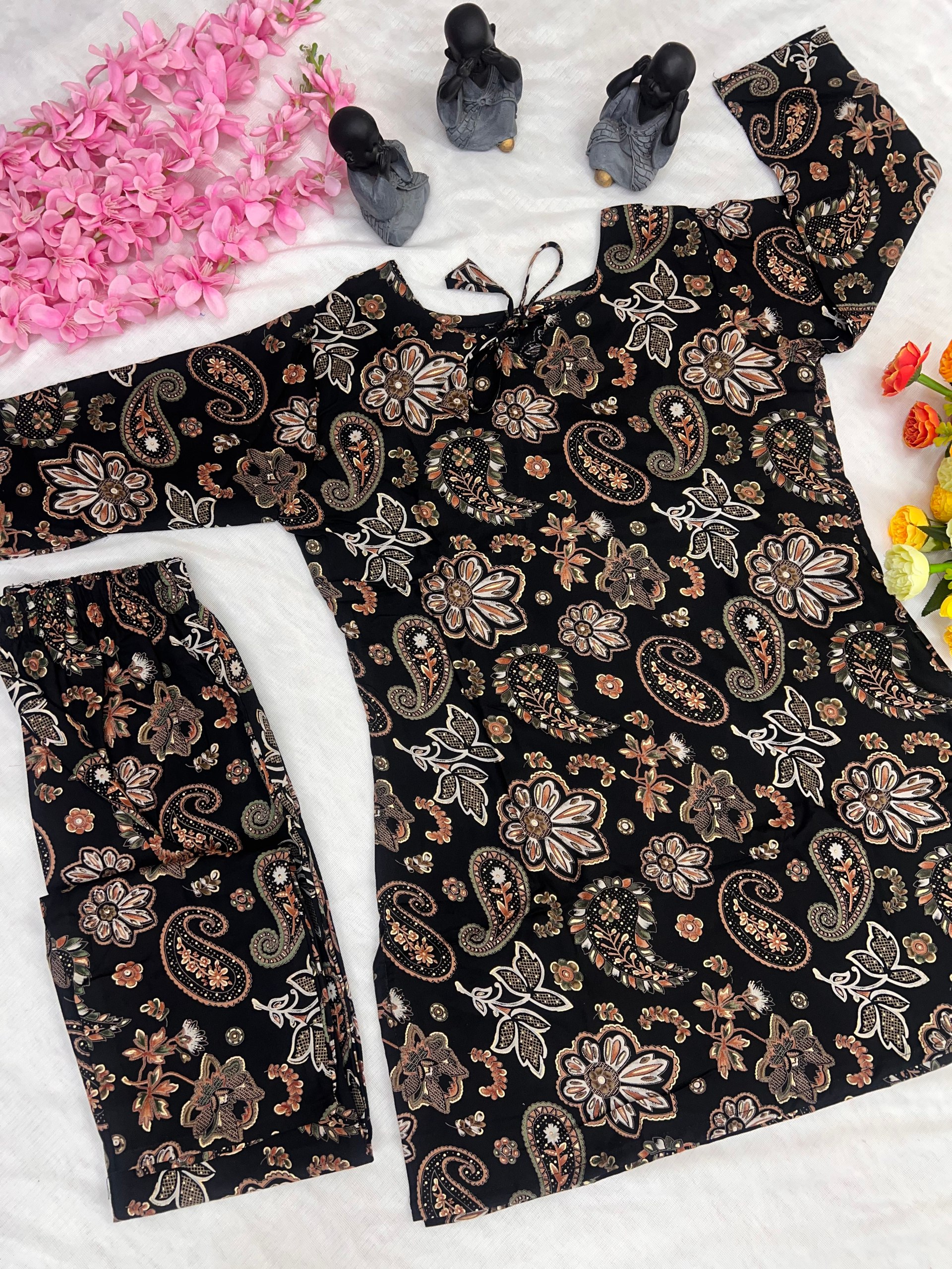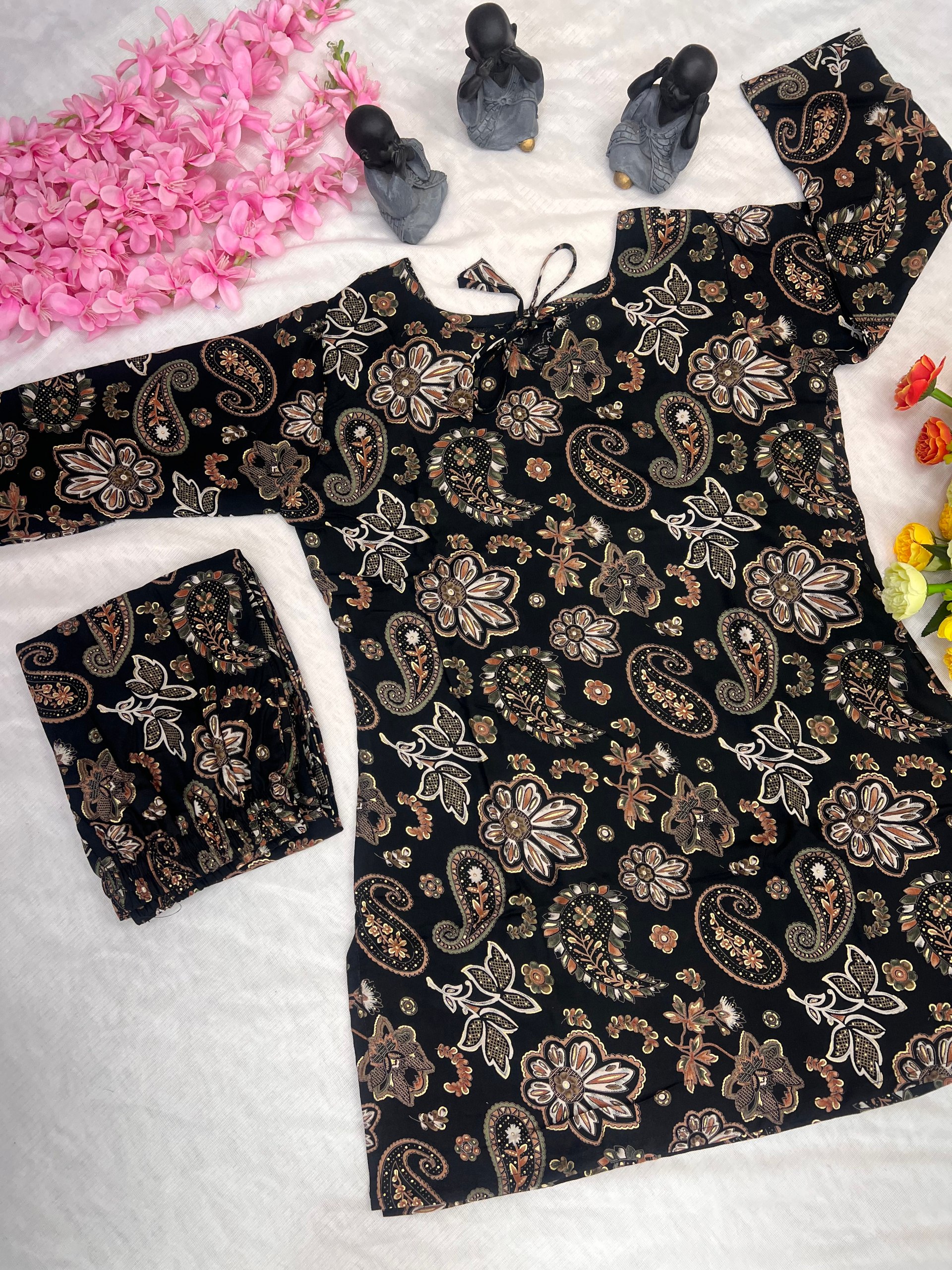 | Name : | WM 24 Black Pure Soft Rayon Cotton Co-ord Set |
